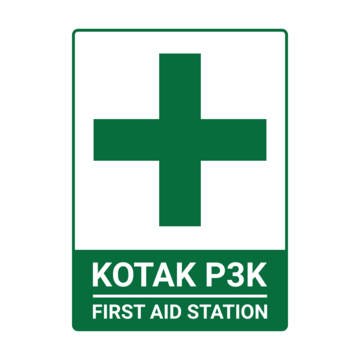 - Warna dasar kotak P3K putih dengan tanda P3K/palang hijau.