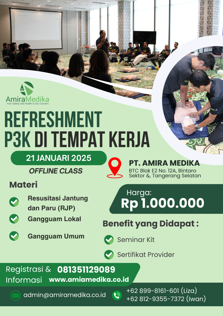 Pelatihan Refreshment Petugas P3K di Tempat Kerja Periode Januari 2025!