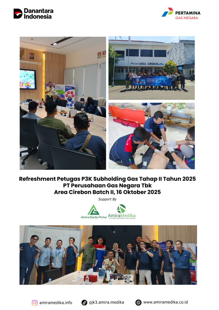 Dalam upaya memperkuat budaya keselamatan dan kesehatan kerja (K3), PT Perusahaan Gas Negara (PGN) kembali mengadakan kegiatan Refreshment bagi petugas Pertolongan Pertama pada Kecelakaan (P3K) Area Cirebon batch II pada tanggal 16 Oktober 2025